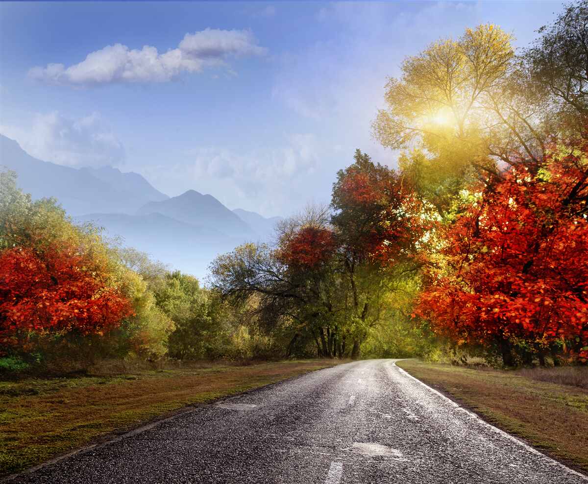 Tapet Fototapet drum ploios în pădurea de toamnă (articol a95527 ) din categoria Fototapet Popular