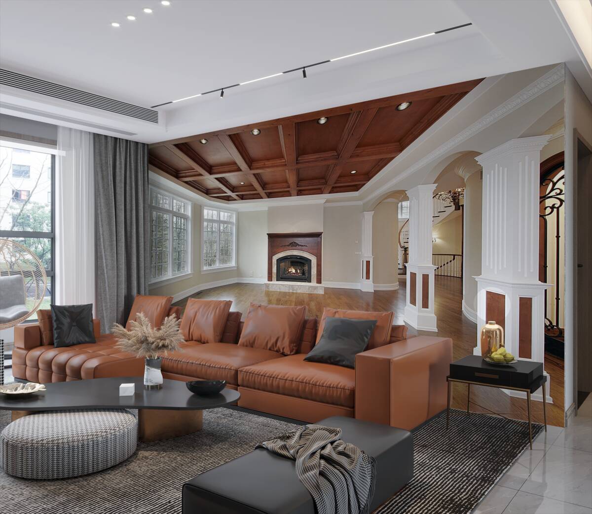 Fototapet interior elegant din piatră albă și lemn