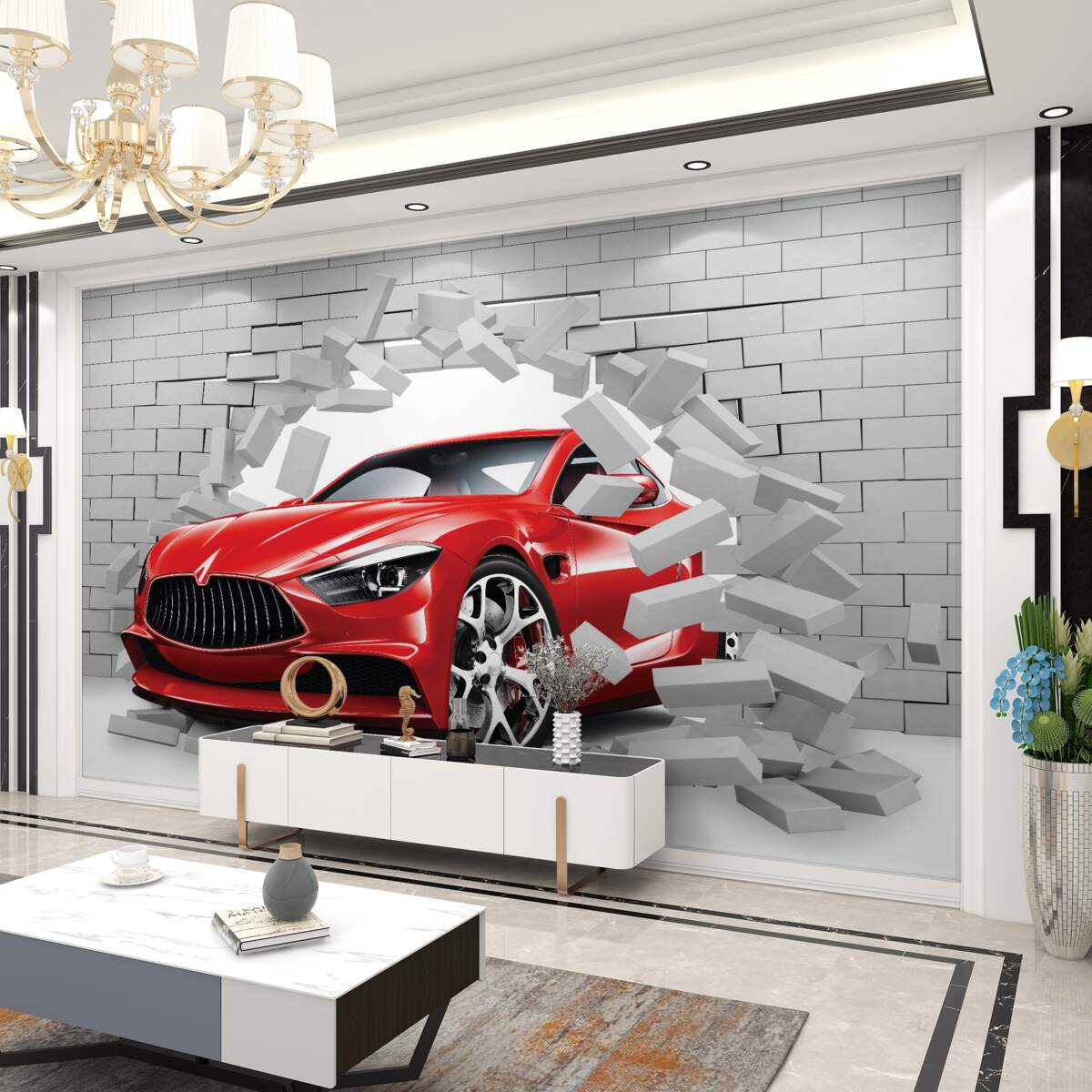 Tapet Fototapet mașina roșie sparge un zid de cărămidă (articol a96236 ) din categoria Fototapet Popular