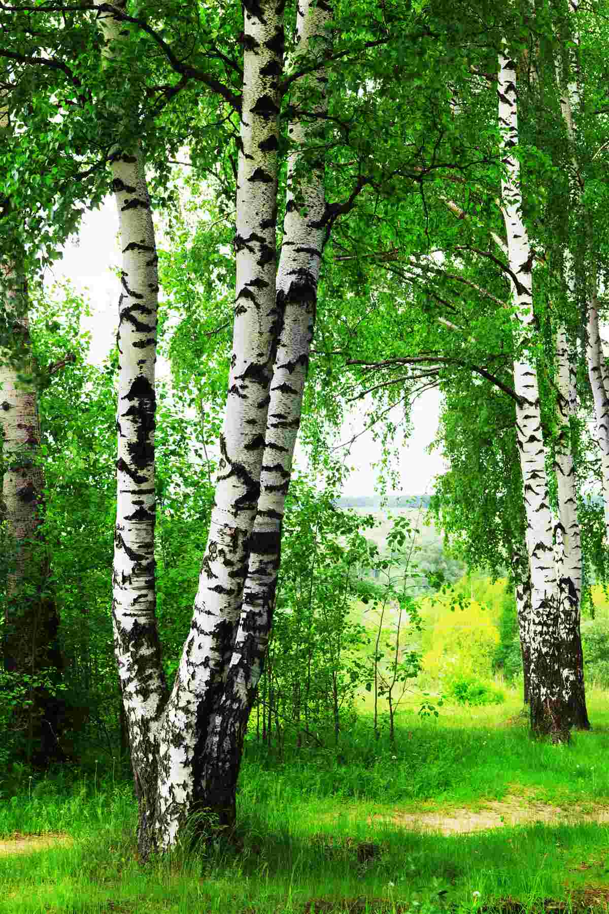 Tapet Fototapet mesteacăni pe gazon (articol a97483 ) din categoria Fototapet Popular