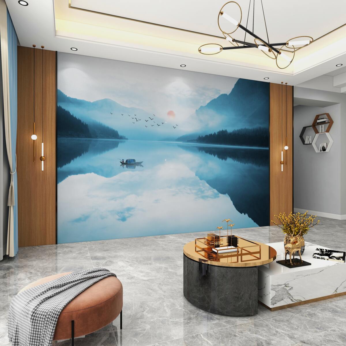Tapet Fototapet Motive japoneze ale munților lângă apă la apus (articol a95058 ) din categoria Fototapet Popular