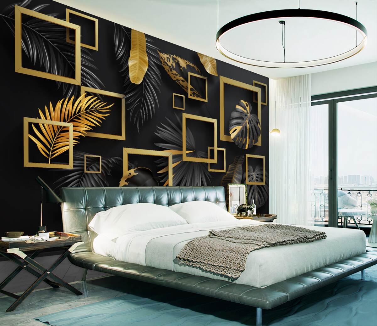Tapet Fototapet perete negru cu rame aurii (articol a96282 ) din categoria Fototapet Popular