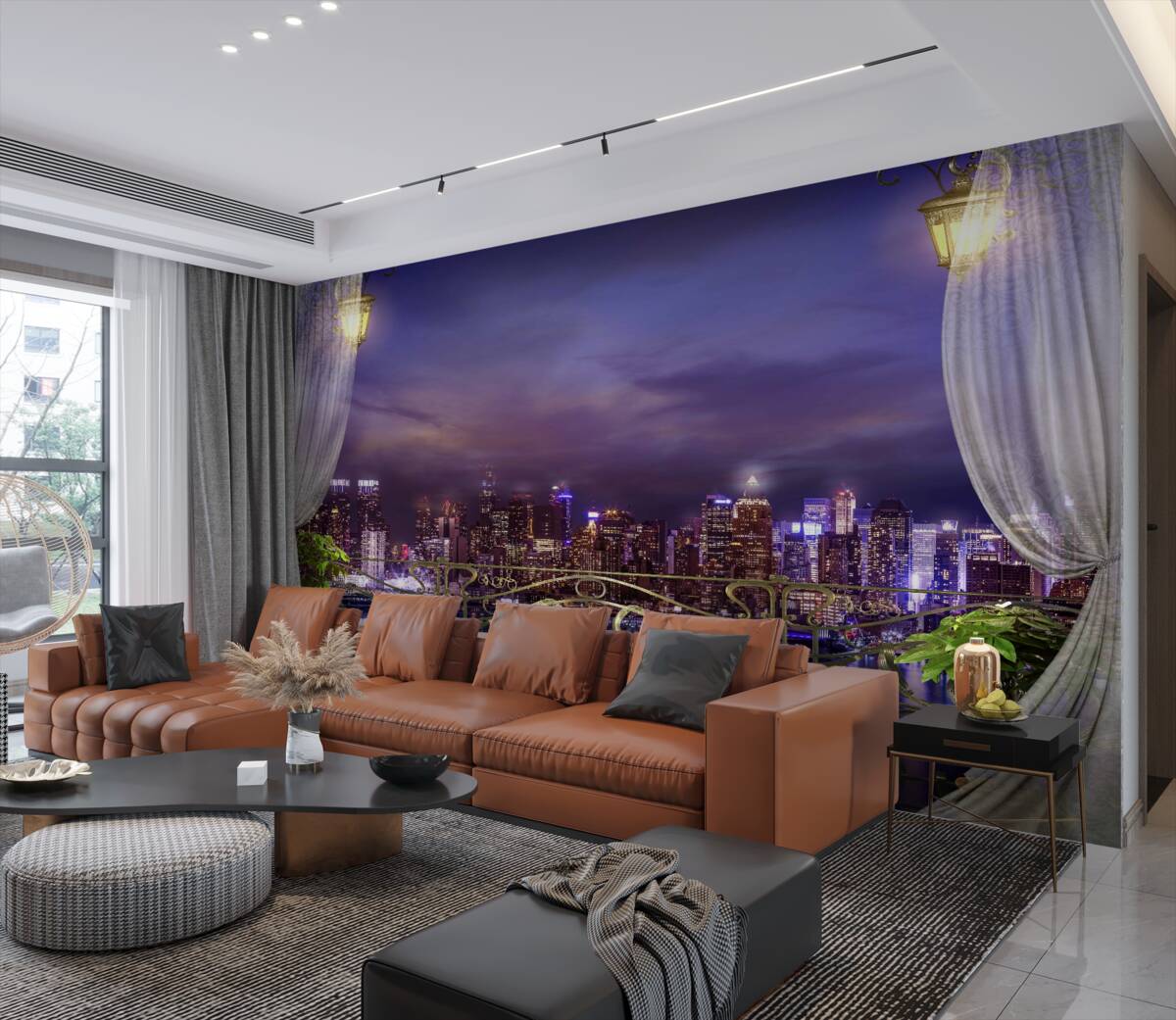 Tapet Fototapet vedere la oraș noaptea de pe balcon (articol a96870 ) din categoria Fototapet Popular