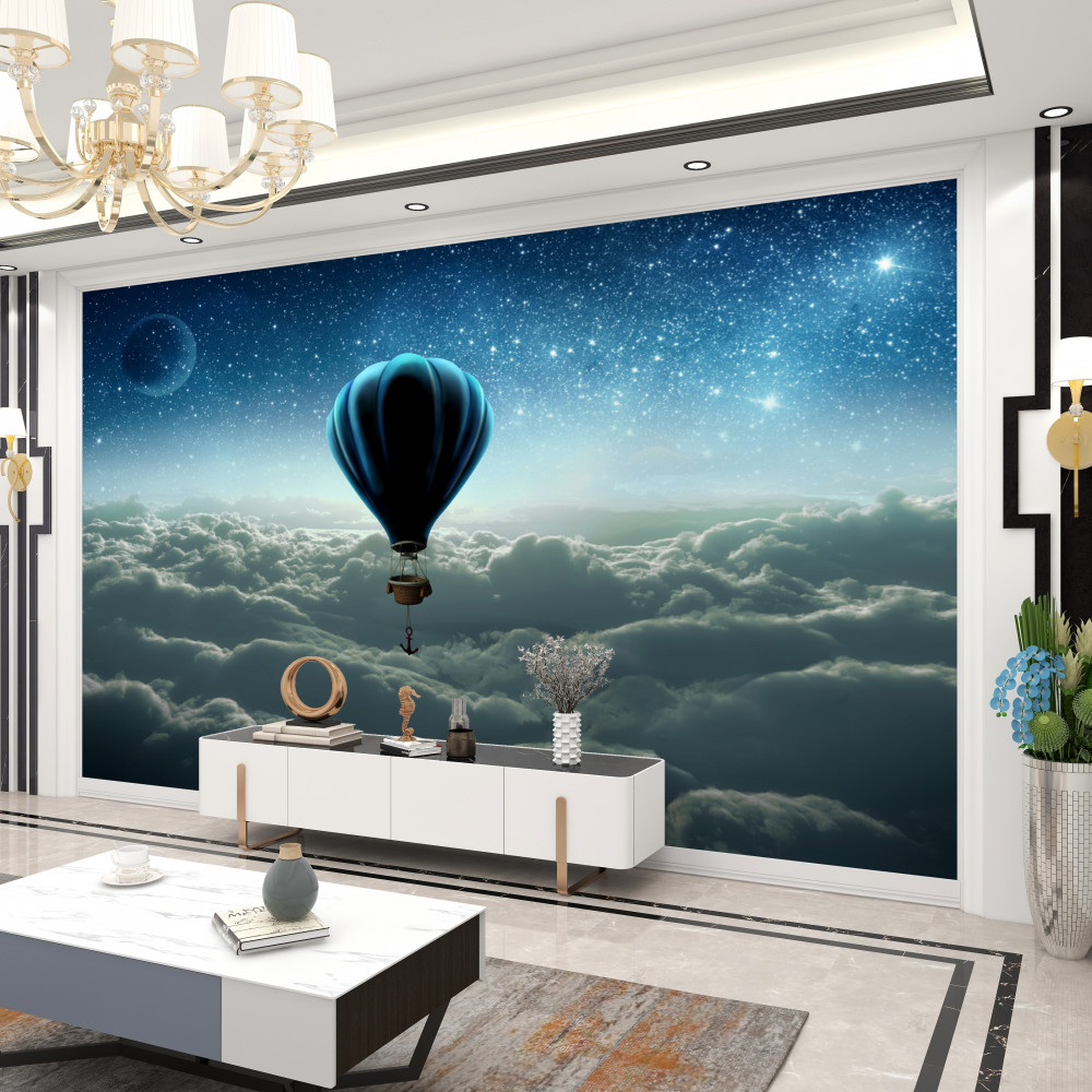 Fototapet balon cu aer cald deasupra norilor noaptea