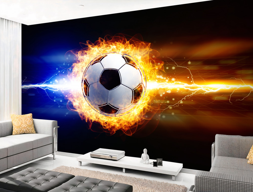 Tapet Fototapet minge de fotbal în raze de foc (articol a93337 ) din categoria Fototapet Sport