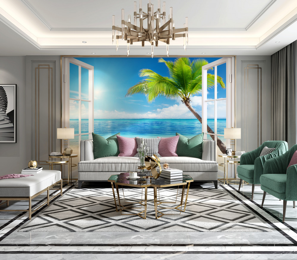 Fototapet deschide ramele ferestrelor spre plajă și mare