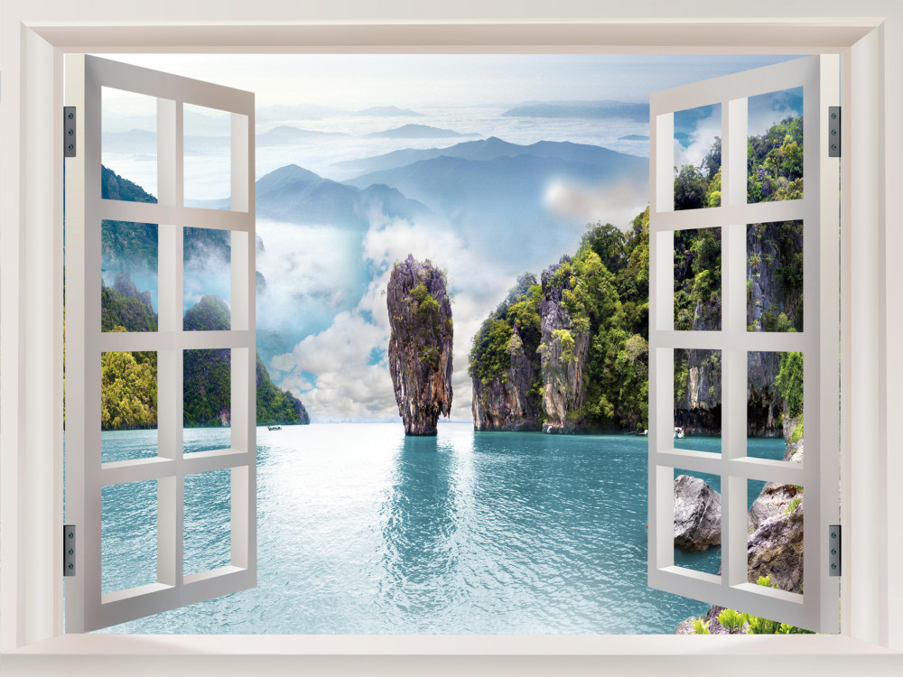 Tapet Fototapet Fereastră cu vedere la stânci și la apele liniștite ale mării (articol a94127 ) din categoria Fototapet Natura